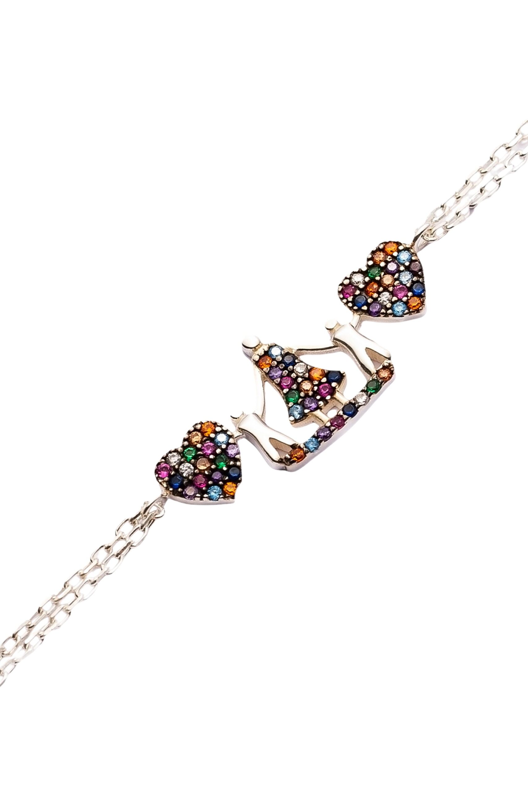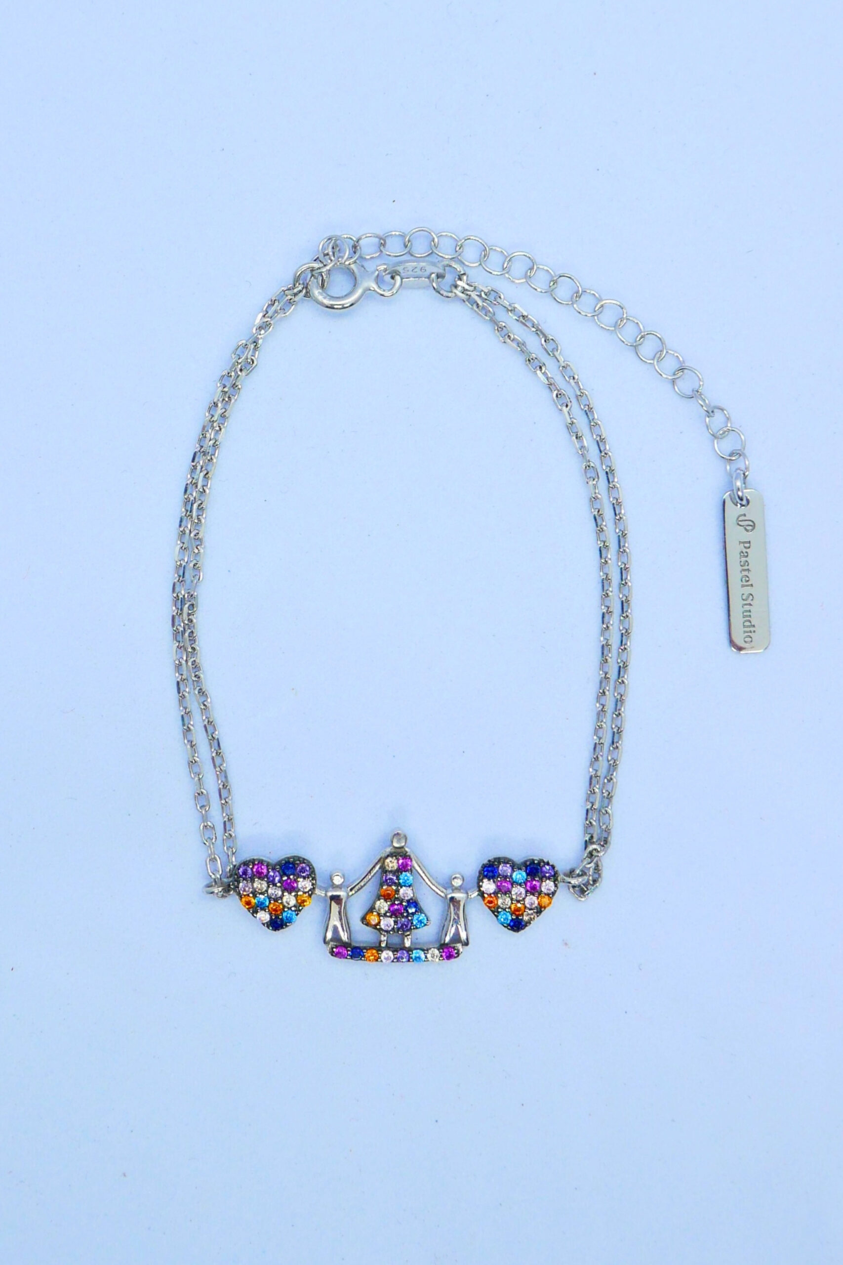 Armkettchen aus 925-Sterlingsilber - mit bunten Strass-Steinen besetze Mutter und zwei Kinder sowie zwei Herzen