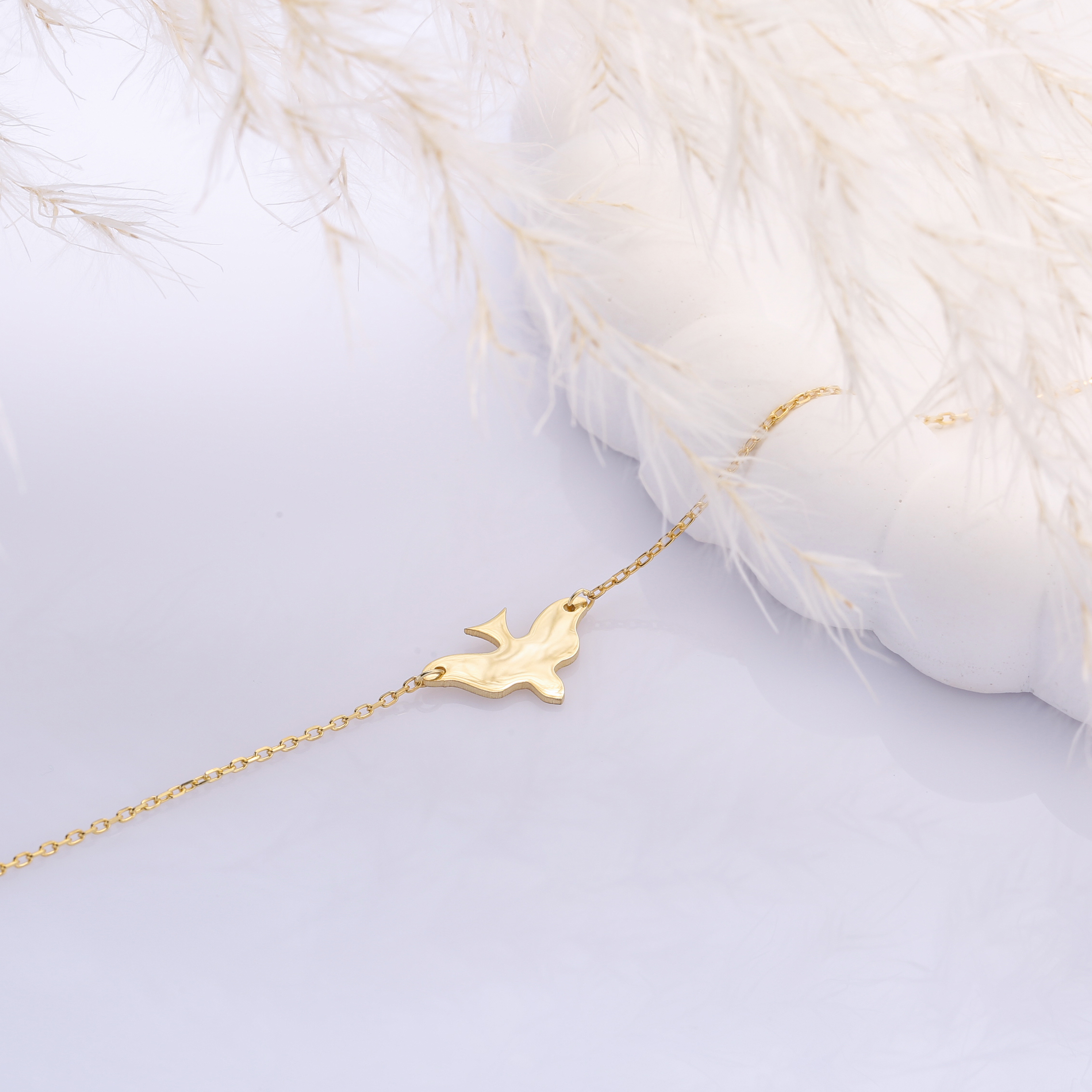Armband aus 925 Sterlingsilber mit Anhänger in Vogelform mit ausgebreiteten Flügeln. Erhältlich in Silber (rhodiniert) und Vermeil-Vergoldung. Nickelfrei.
