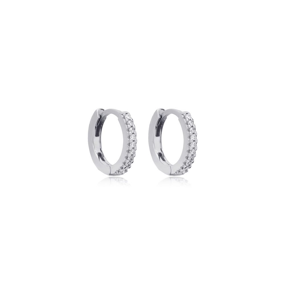 Feine, kleine Creolen aus 925 Sterlingsilber, mit kleinen Zirkonia-Steinen besetzt. Erhältlich in Silber (rhodiniert) und Vermeil-Vergoldung.