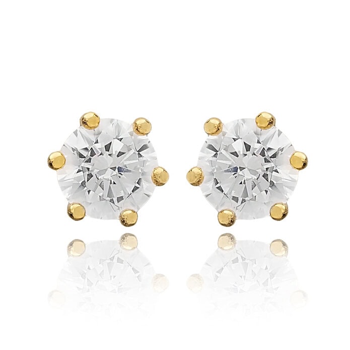 Ohrstecker aus 925 Sterlingsilber mit Zirkoniastein (5 mm) in klassischer Six-Claw-Fassung. Erhältlich in Silber (rhodiniert). Nickelfrei.