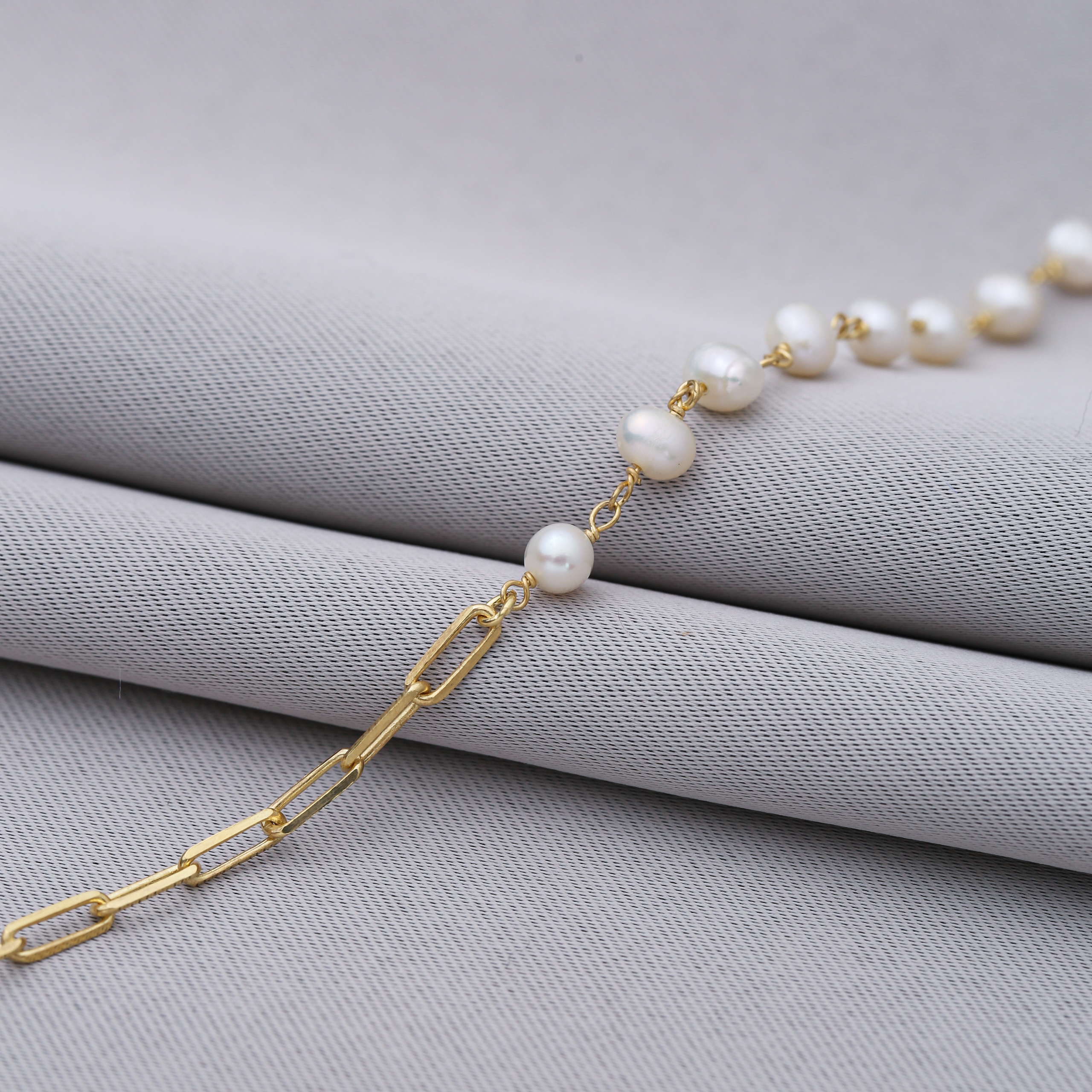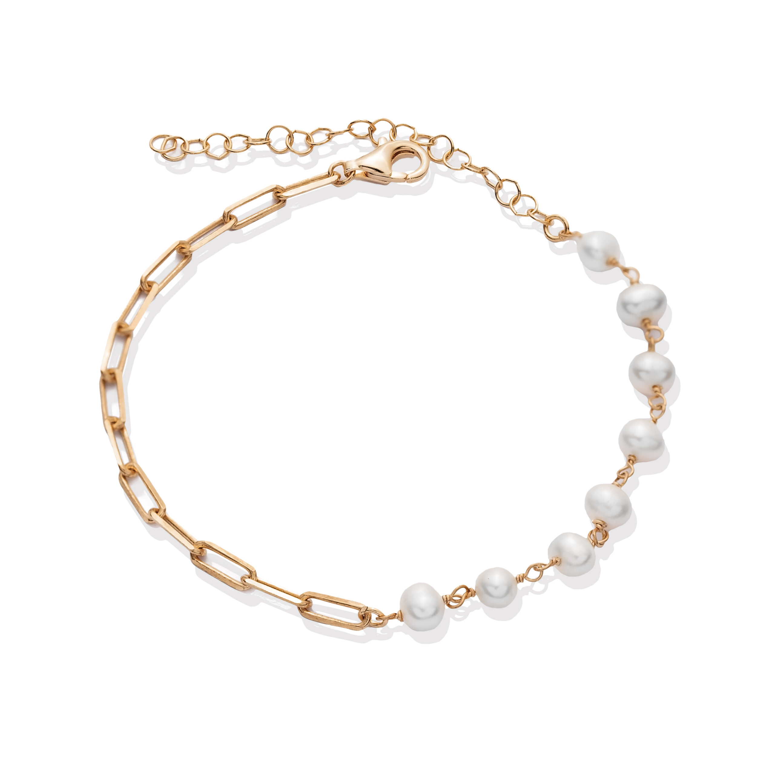 Paperclip-Kettenarmband IV – Perle – 925 Sterlingsilber